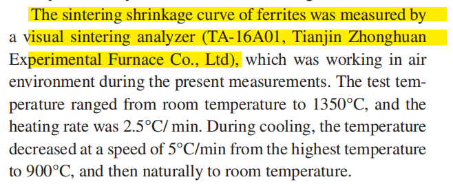 論文中所使用的可視化高溫形變分析儀TA-16A01由天津中環(huán)電爐股份有限公司提供,用于測(cè)定鐵氧體的燒結(jié)收縮曲線。在此感謝老師對(duì)天津中環(huán)儀器的認(rèn)可。天津中環(huán)將持續(xù)助力科研工作者科學(xué)研究和技術(shù)創(chuàng)新。